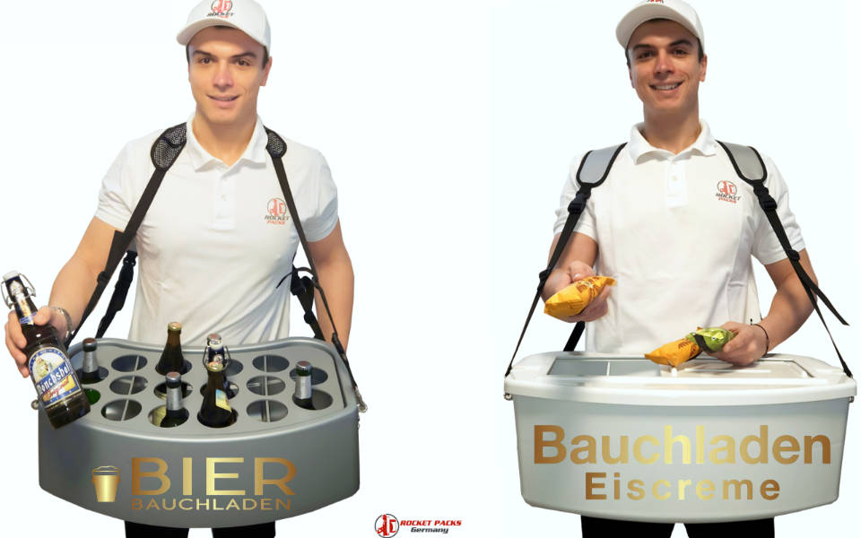 - Mit einem Getränkerucksack oder Bauchladen lassen sich Getränke und Werbematerialien effizient und aufmerksamkeitsstark verteilen.